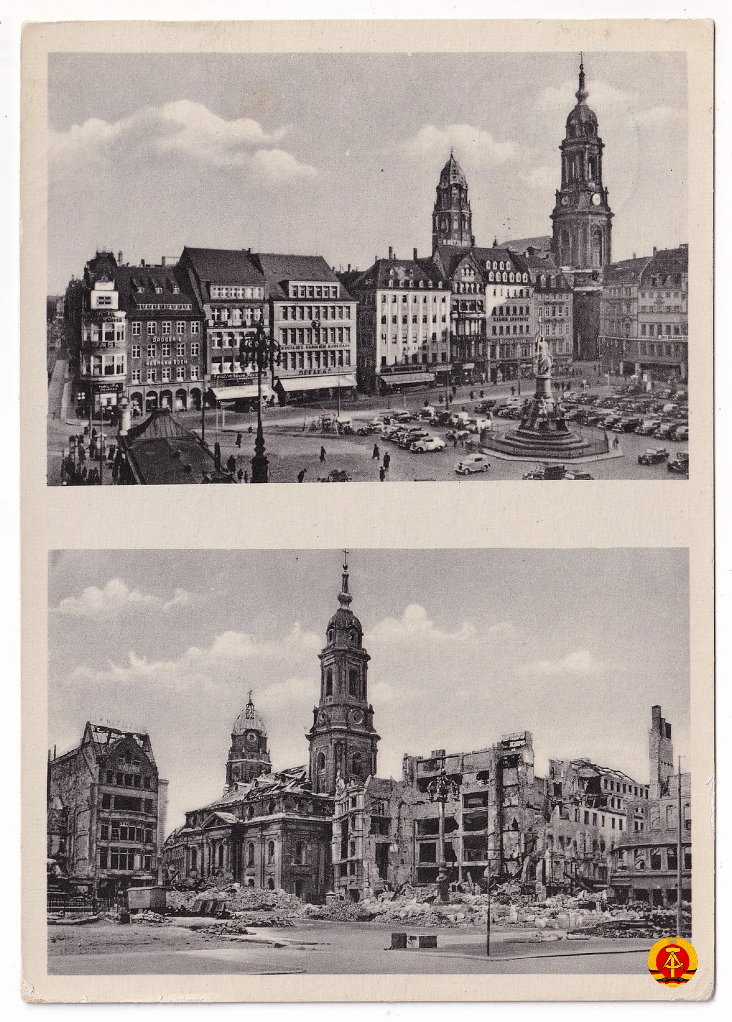 Dresden, der Altmarkt – Vor und nach der Zerstörung durch anglo-amerikanische Bomber am 13. Februar 1945 - 1953