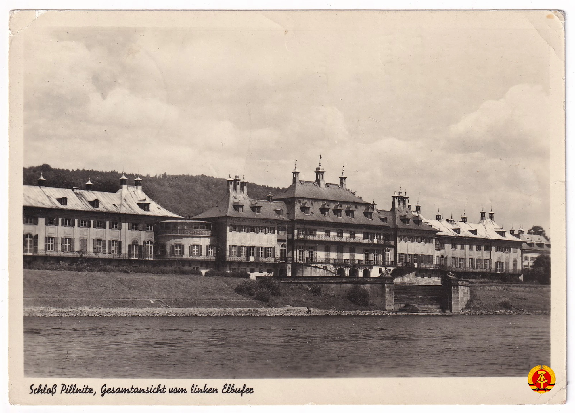 Schloß Pillnitz, Gesamtansicht vom linken Elbufer - 1956
